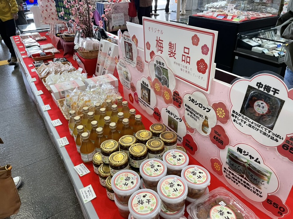 館内にはお土産コーナーがあり、この時期は梅まつりにあわせて特設売り場も登場しているんです。