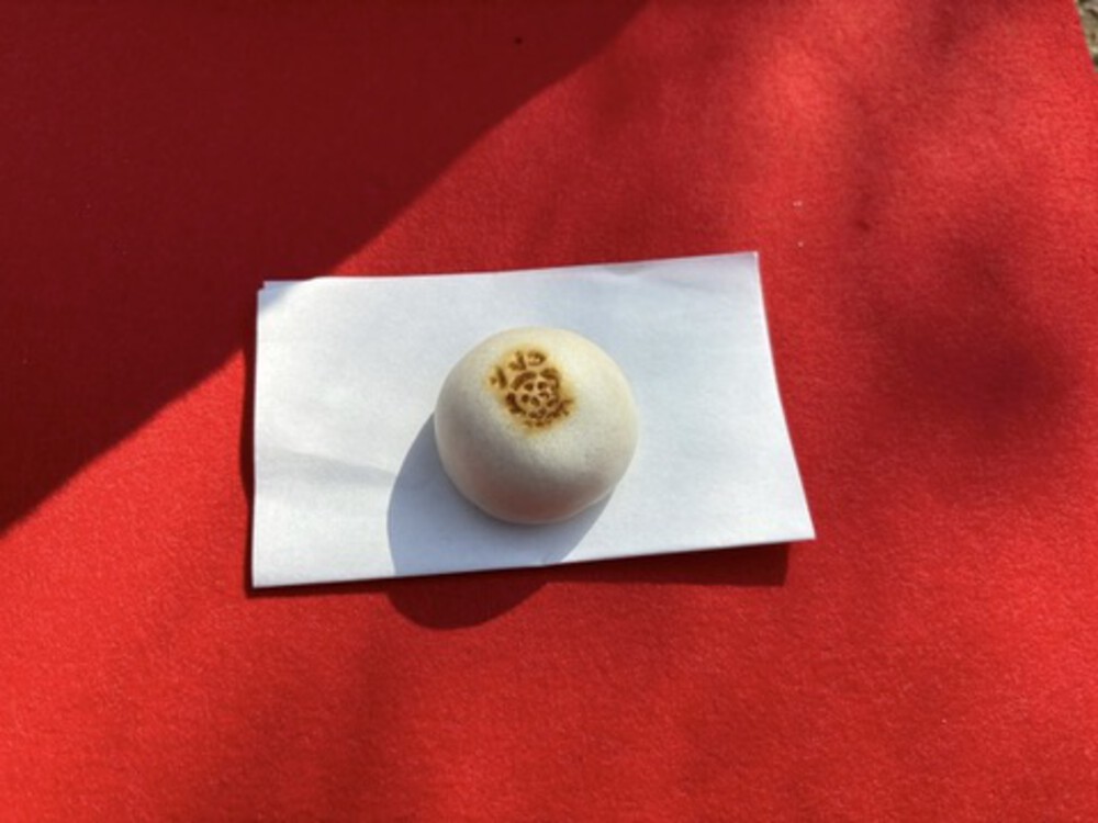 あたたかな日差しの下、梅の花にぐるりと囲まれた席に着くと、まずはこの時期にぴったりな梅まんじゅうが運ばれてきました。