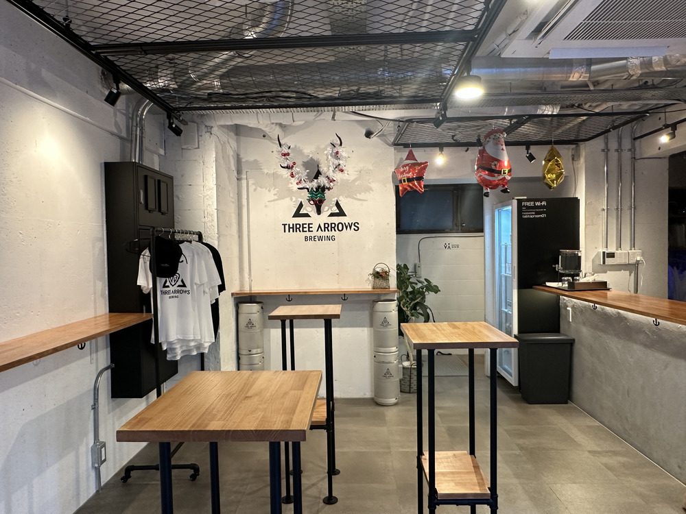 今回紹介するのは、府中駅北口から徒歩約2分という好立地にある、府中産クラフトビールが気軽に味わえるブルワリー「スリーアローズブルーイング」。