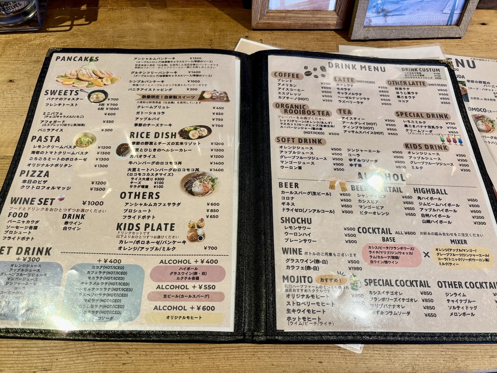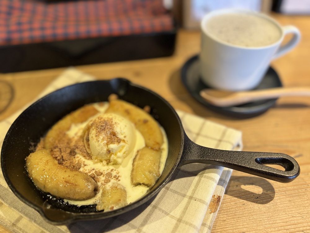 数々のメニューに迷いつつ、「バナナのフォスター」と「黒ごまラテ」を注文しました。
