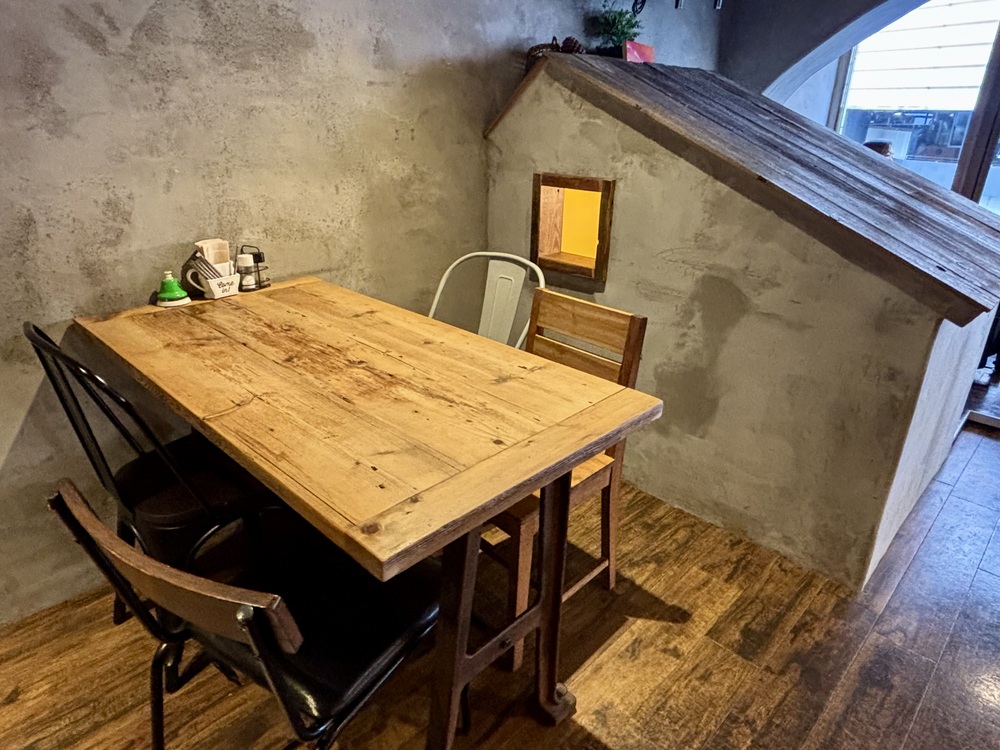 机や椅子は落ち着いたテイストで揃えられていて、窓際にはソファ席も並んでいました。2人〜4人で座れるテーブル席や、カウンター席もあるので、1人でも、大人数でも、居心地の良く過ごせる空間が広がっています。