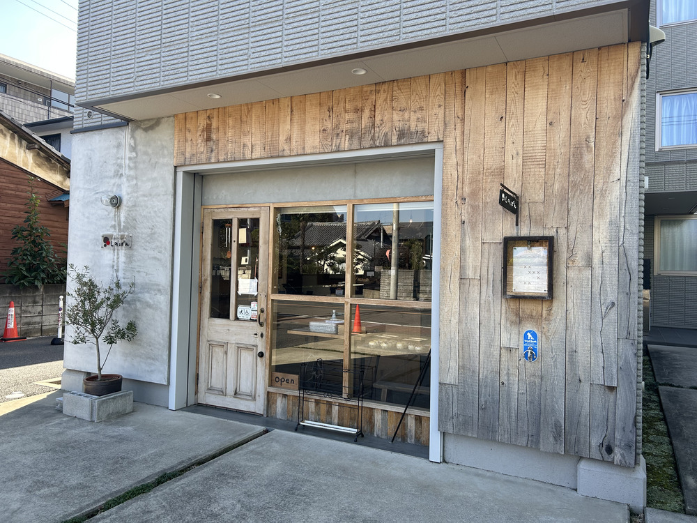 しのぱんはシンプルながら木の温もりが感じられるかわいらしい外観のお店。