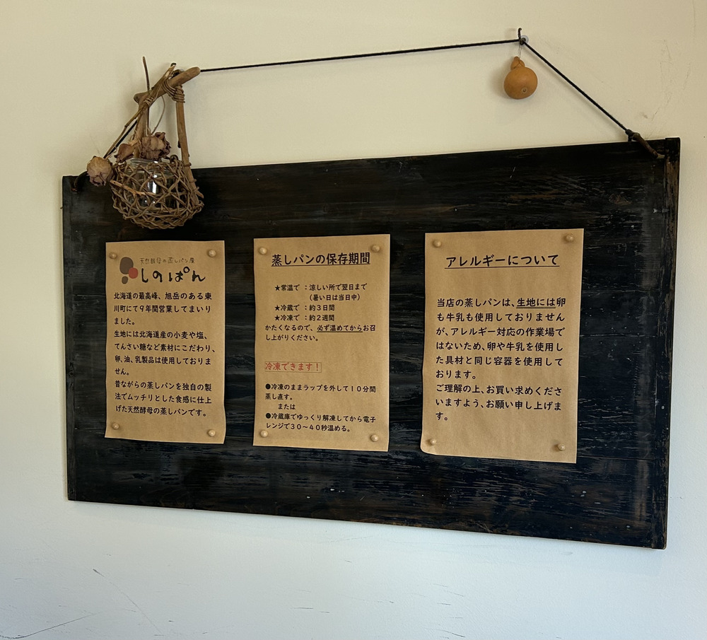 お店の中には、 蒸しパンの保存方法や保存期間についてのお知らせも貼られていて、初めての来店でも安心できます。