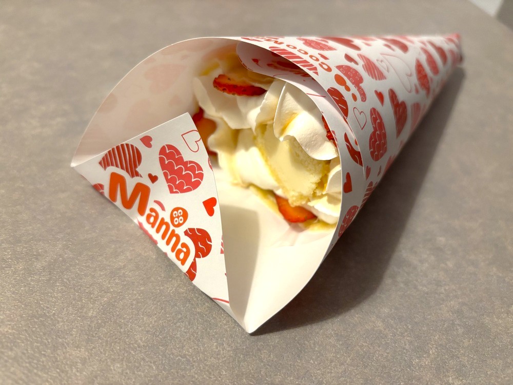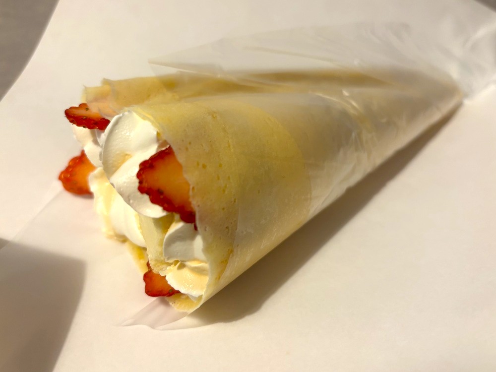 今回は、ココマンナのクレープの中で私が一番好きなメニュー、「いちごチーズケーキ」をテイクアウトしました。