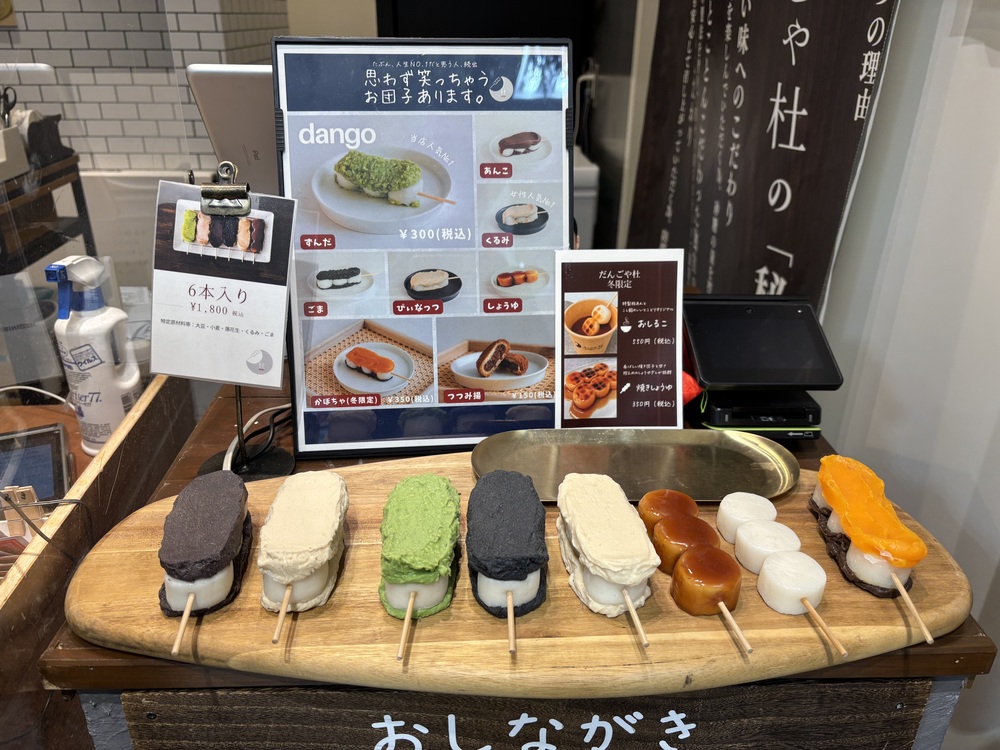 冬季限定のおしるこや、焼きしょうゆのお団子も販売されていて、どれにしようか悩んでしまいますね。