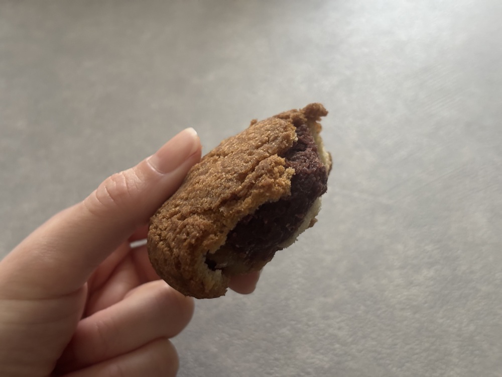 手で割ってみると、本当にぎっしり餡が詰まっているのがわかります。